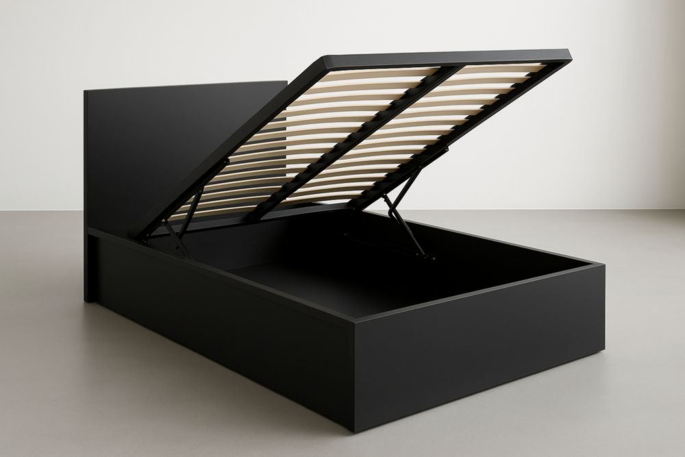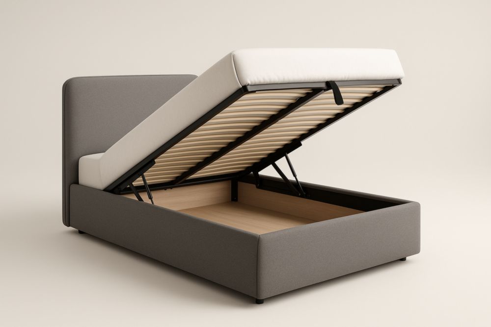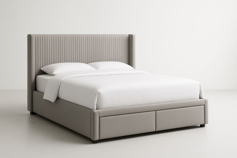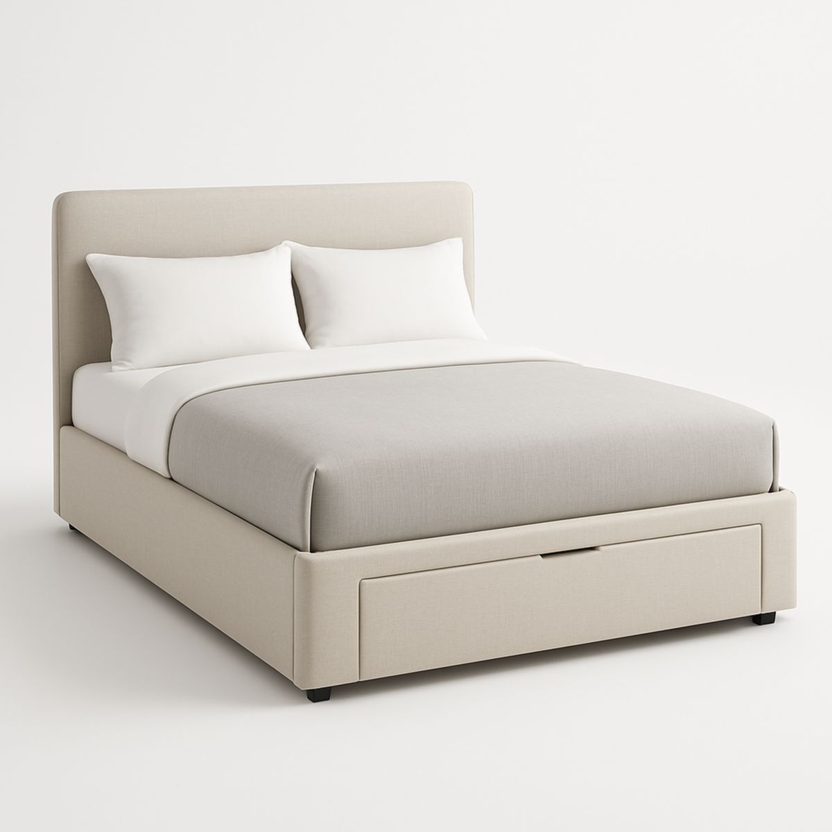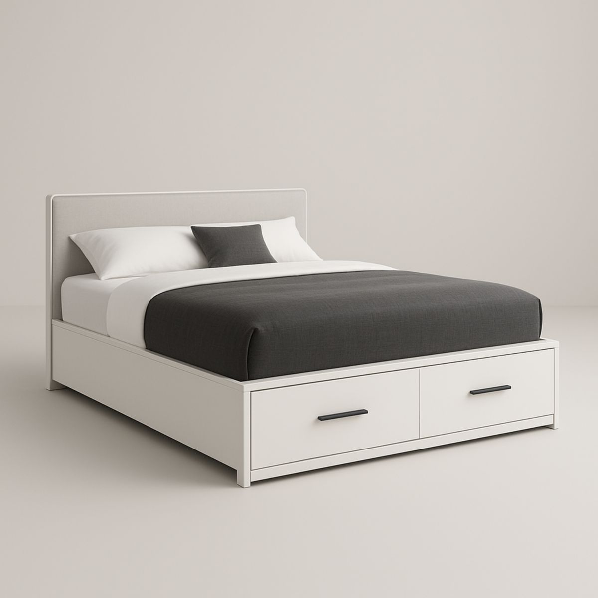 Lit de rangement en bois blanc et gris avec tiroirs, dimensions : 160 x 200 cm